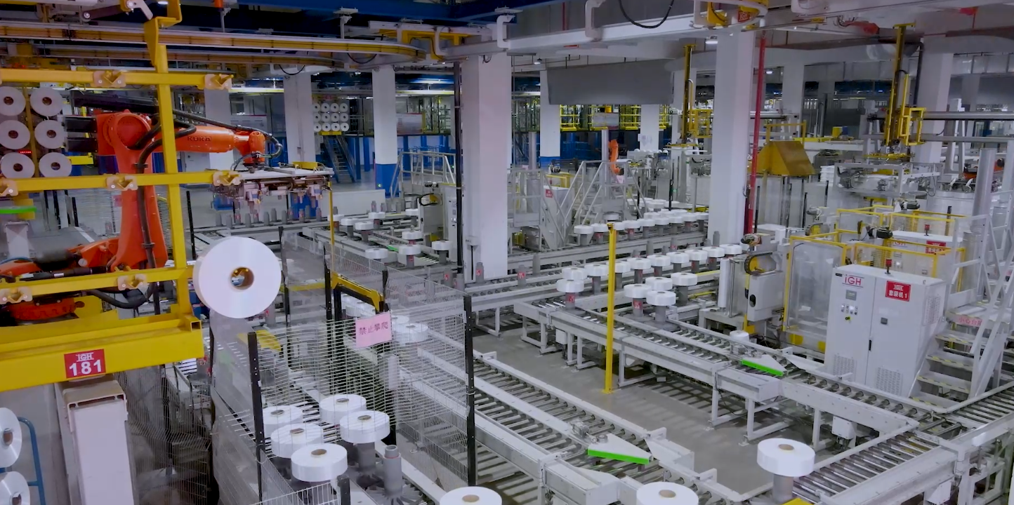 自動落絲、天軌運輸、絲餅檢驗和暫存、絲餅分揀和包裝