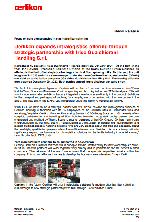 2024年1月,IGH收購巴馬格旗下自動(dòng)化部門,