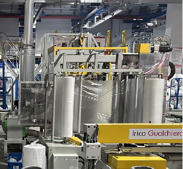 9.纏膜機(jī)用纏繞薄膜將絲包四周纏繞包裝。